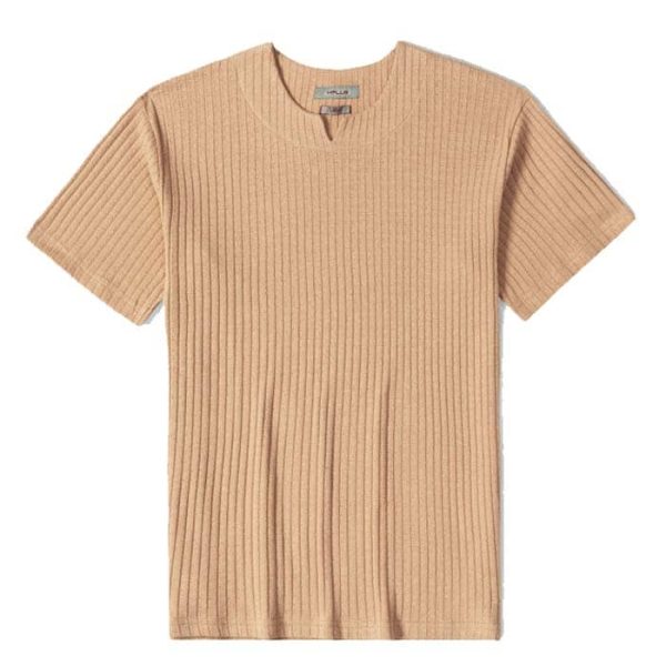 تیشرت یقه کوبایی طرحدار 96675